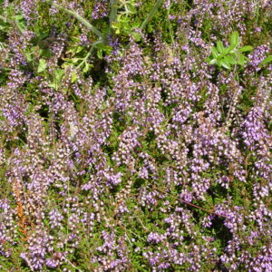 Many of our lowland heaths are found in Southern England and East Anglia. The dry, sandy acidic soils of these lowlands are populated by plants such as Bilberry, Gorse, Heather, and Tormentil. The warm soils provide fantastic habitat for reptiles basking in the sun, whilst shrubs provide cover for ground nesting birds.