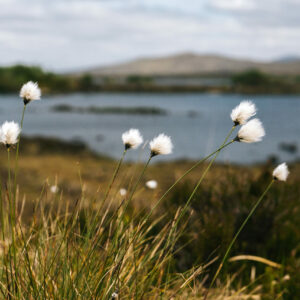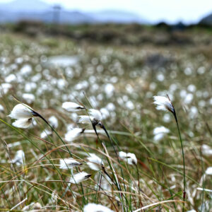 The names moorland and heathland are interchangeable, but moorland often describes areas of wet, peaty soils. Covering large areas of our uplands, moorland is found across the Pennines, North York Moors, Wales, and Scotland. Acid loving plants dominate the landscape, with Purple Moor-grass, Mat-grass, Heath Bedstraw, and Heathers, creating a mosaic of colour and texture during summer. In areas of high rainfall, peat bogs are formed where the soils are saturated, and the peat depth is variable. Sphagnum moss and Cotton Grass species vegetate these lands; they are also some of our best habitats for capturing and storing carbon.